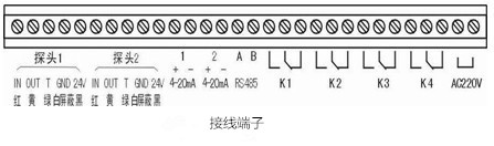 TC600T分體壁掛式圖形超聲波液(物)位差計安裝尺寸圖及接線圖。